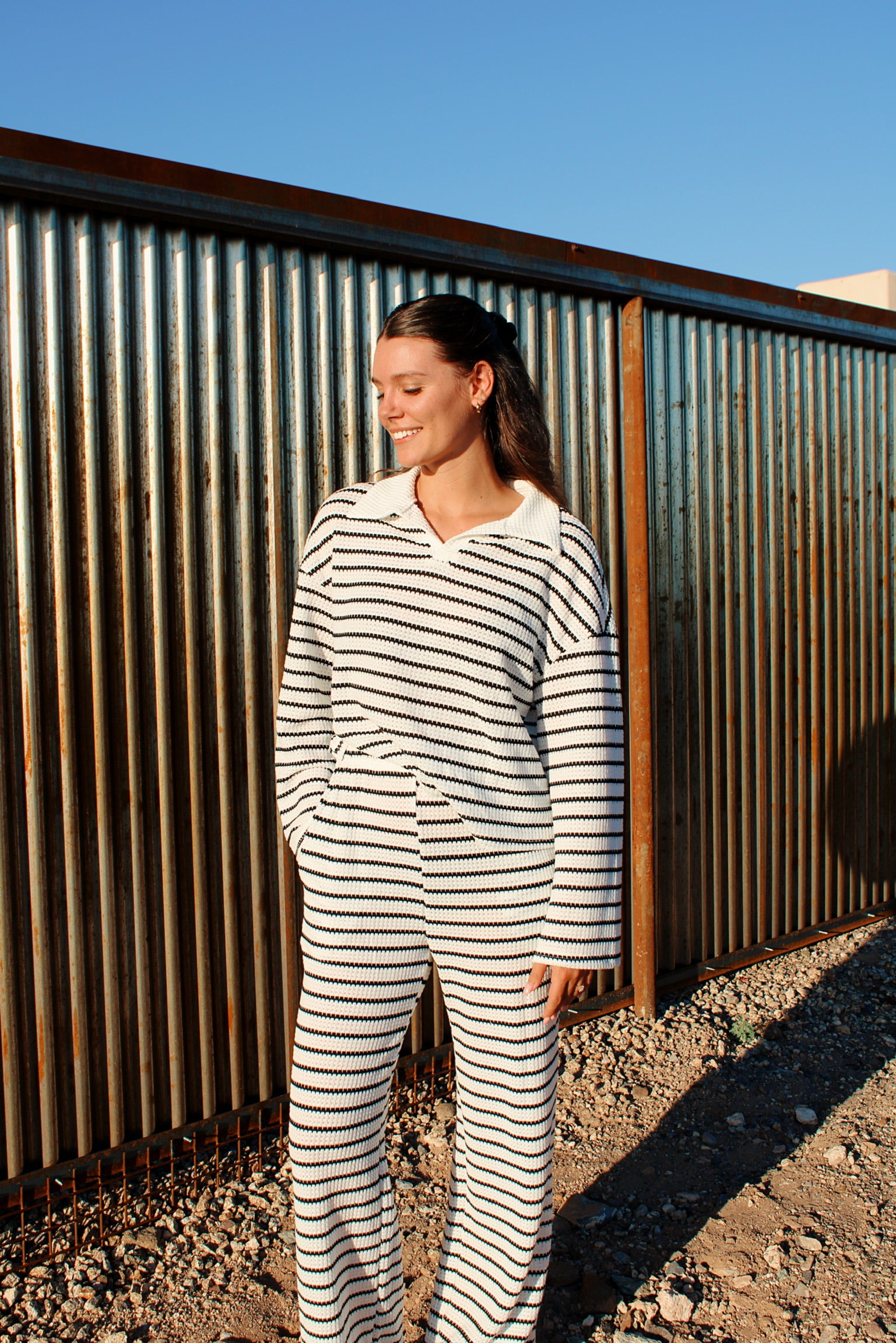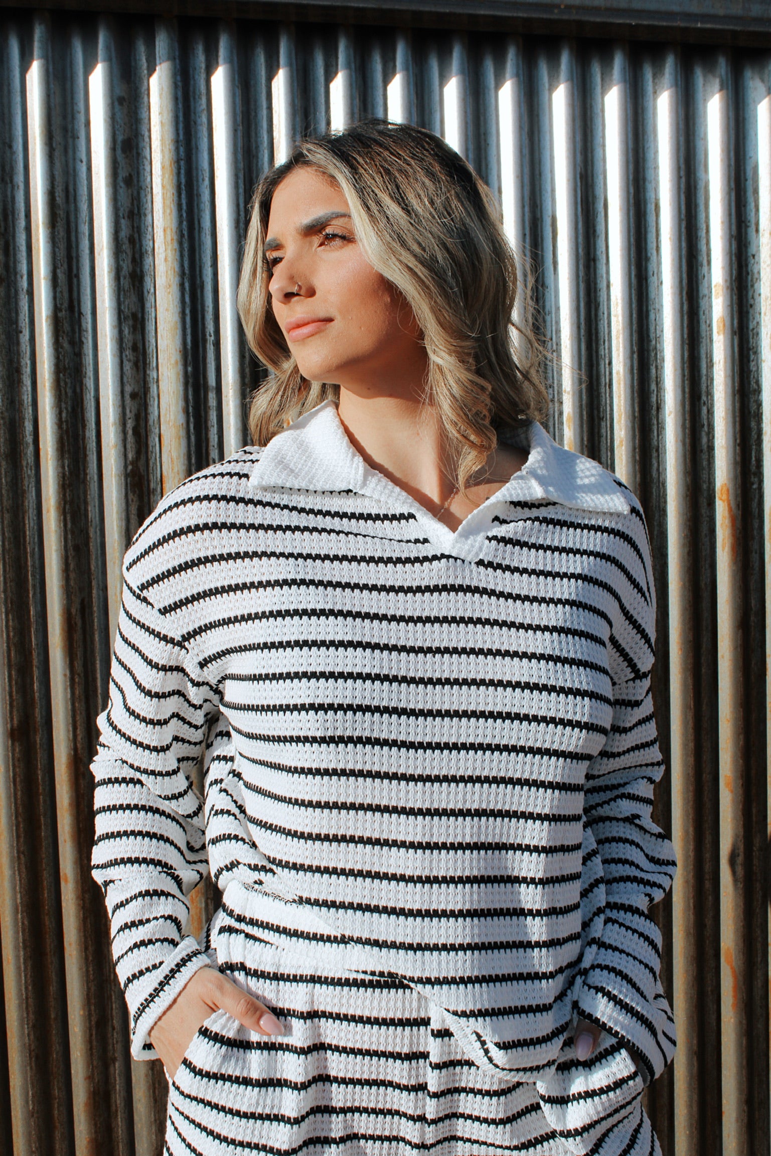 Wrap yourself in comfort and western-boho charm with our Cozy Canyon Set. Crafted from ultra-soft waffle knit fabric, this matching set includes a relaxed long sleeve top and comfy waffle knit sweatpants for an effortlessly chic, laid-back look. The textured knit adds a touch of rustic detail, while the easy pull-on fit keeps things simple and comfortable. Perfect for cozy mornings, coffee runs, or lounging in style—this set brings that warm, desert-inspired feel to your everyday wardrobe.