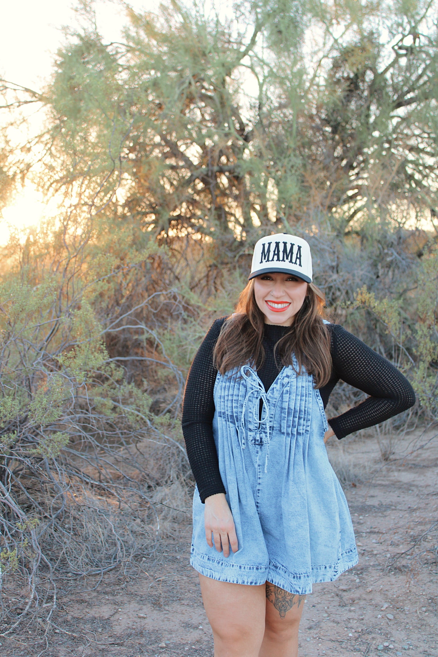 Desert Daze Romper — Your new go-to for those golden-hour adventures. This medium wash denim romper brings effortless western boho charm with its relaxed, easygoing fit and simple pull-on style (no buttons, no fuss). Pair it with a cozy cardigan and boots for a dreamy fall look that’s equal parts casual and chic — made for pumpkin patch days and desert sunsets alike.
