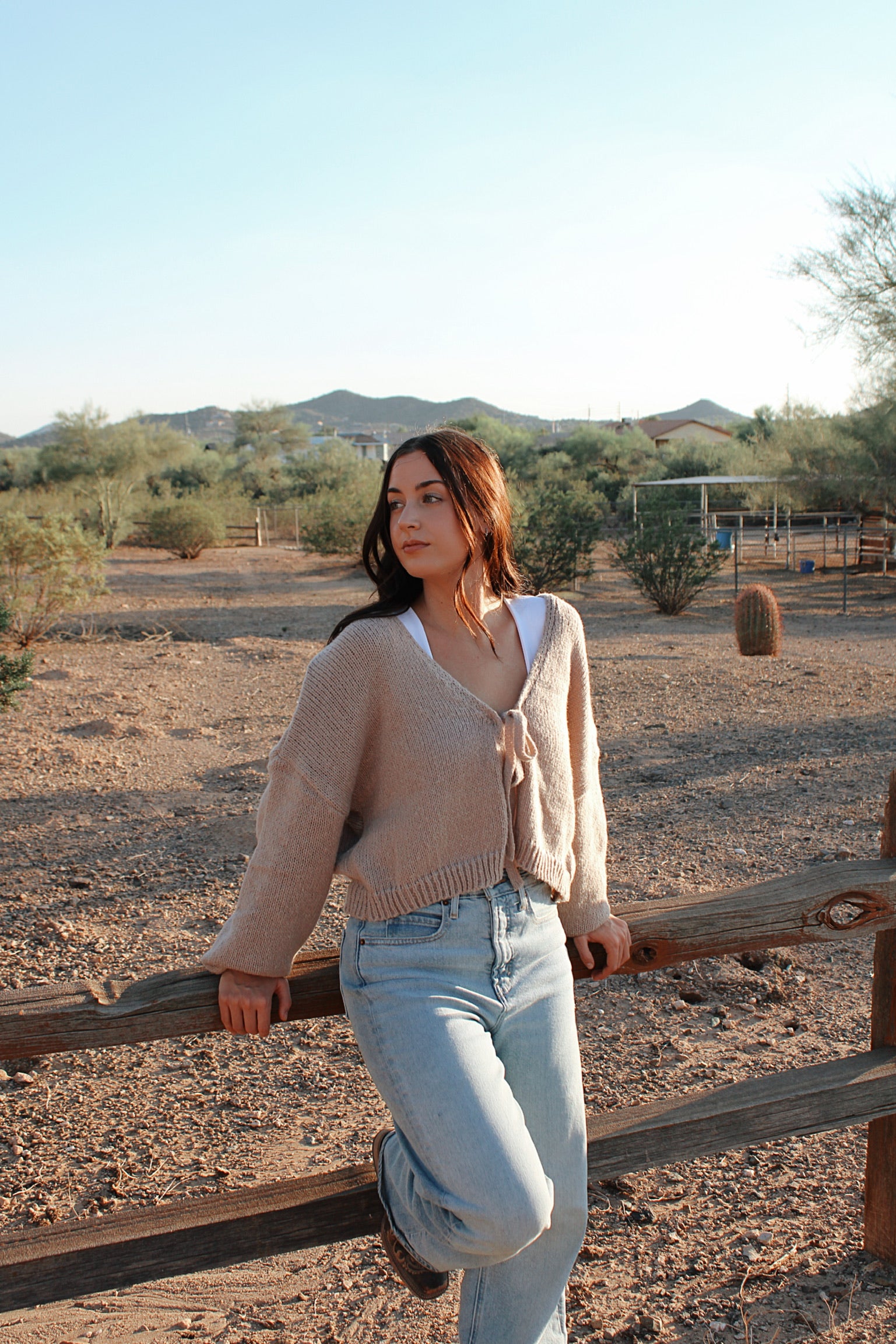 Soft, feminine, and full of western-boho charm, our Golden Hour Knit Cardigan is the perfect layering piece for every season. Made from a cozy knit fabric, this cropped cardigan features a delicate bow tie closure that adds a sweet, romantic touch. The relaxed fit makes it easy to pair over a lace top, graphic tee, or flowy dress. Whether you’re dressing it up with boots or keeping it casual with denim, this cardigan adds that effortlessly chic, free-spirited flair to any outfit.